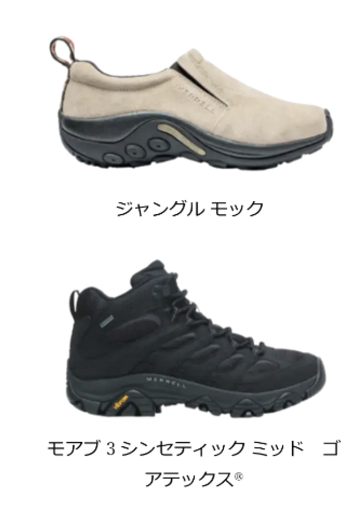 MERRELL は創業から常にこれまでにない「新しさ」を追求し続け、ハイキングブーツやトレイルランニングシューズ、スポーツサンダルなど、アウトドアからライフスタイルまで、多彩なシューズを展開しています。世界中のバックパッカーから定評のある「モアブ」シリーズや、1998年の登場以来、累計販売1,700万足を超える「ジャングルモック」シリーズ、アウトドアシーンからタウンユースまで幅広い用途で人気の「カメレオン」シリーズはMERRELLの代表作とも言えます。